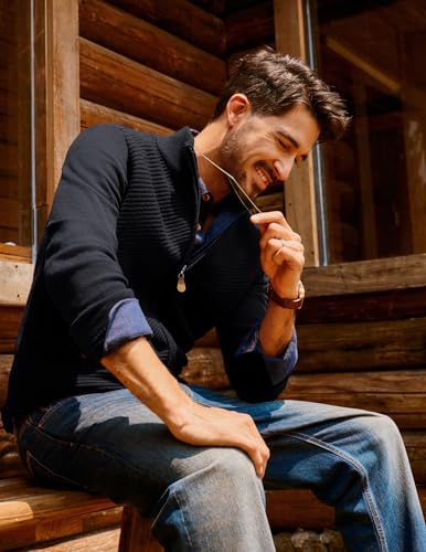 PREMIUM TEXTURED DESIGN: Men’s full zip cardigan sweaters features elegant ribbed knit texture, a modern stand collar, ribbed cuffs, hem and slim fit H-silhouette. The solid color design creates a refined look for casual office wear, evening outings– perfect for creating a layered look without bulk