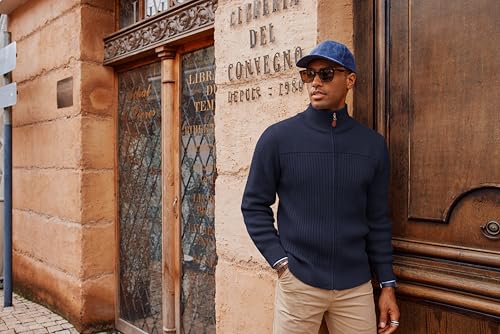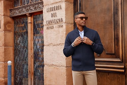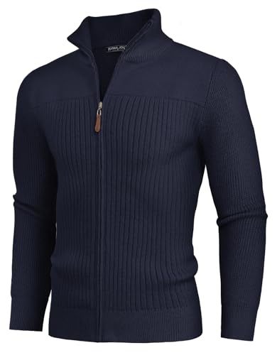 • STYLISH DESIGN: This men’s cardigan sweater features long sleeves, a stand-up collar, and a ribbed knit textured design. The smooth metal front zipper of the men’s cardigan allows you to adjust the way you wear it at will; the classic stand collar adds utility to the sweater and will keep your neck warm in cold weather; the stylish ribbed texture adds sophistication and modernity to this cardigan, keeping you stylish without looking bulky in winter