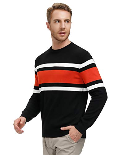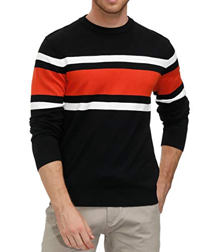 Design: Colorful and vivid contrast stripes pattern, crewneck, pull on closure, long sleeve, slim fit, ribbed hem and cuffs, classic and basic pullover sweater, premium lightweight fine-knit fabric is soft, comfortable and well elastic