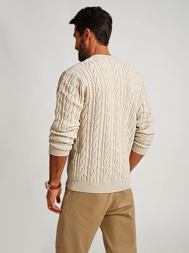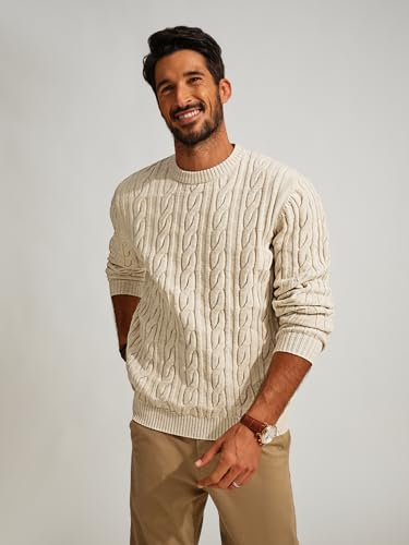 CLASSIC DESIGN: Featuring a timeless crew neck and cable knit design, this sweater is a stylish choice for any casual occasion. The ribbed neckline, cuffs and hem will keep its shape for durability, making it a reliable addition to your closet.