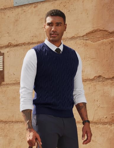 Classic Cable Twist Design: Featuring an elegant cable-twist textured front pattern, this V-neck sweater vest creates a sophisticated look that enhances your style while the ribbed neckline and hemline add refined finishing touches for a polished appearance