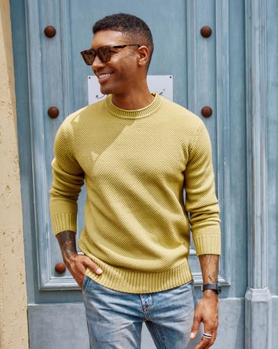 【Classic & Fashionable Design】This crewneck sweater has a timeless waffle knit pattern and a fold-over collar that exudes a classic and sophisticated vibe, and this sweater is medium-to-heavy weight, appropriate for fall or colder winter weather