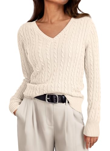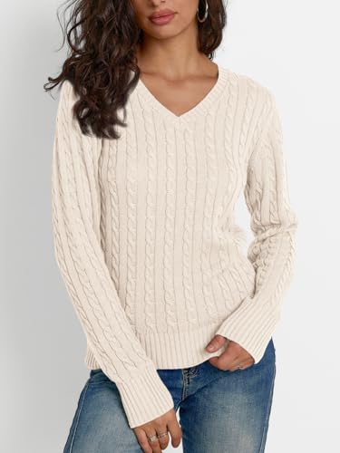 HIGH QUALITY: Cable knit sweater women with soft and breathable fabric keep you comfortable throughout the day and provide you with a fresh wearing experience. Thanks to the great elastic, V-neck sweaters for women perfectly is suitable for most figures