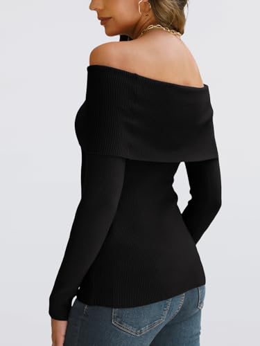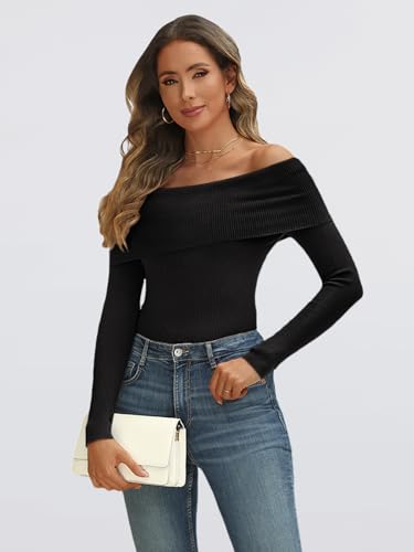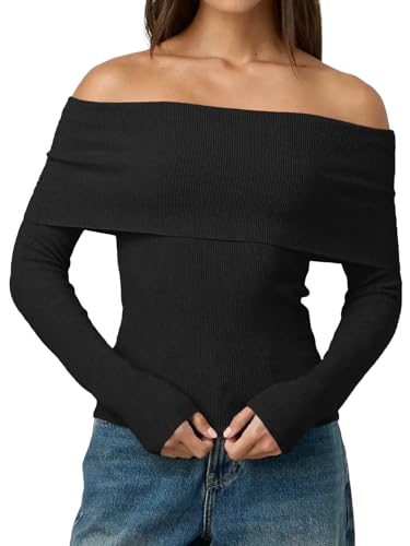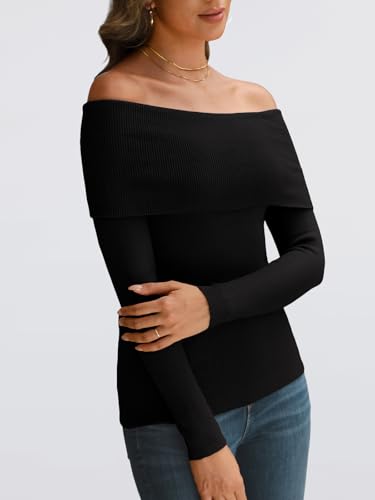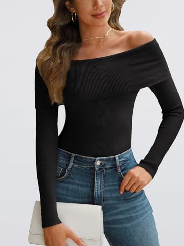 Design: Off the shoulder lapel design paired with long sleeves, slim and lightweight, allowing you to showcase your collarbone and neck lines. Ribbed knit design showcases your unique fashion style. The simple and classic solid color and stripe design never goes out of style