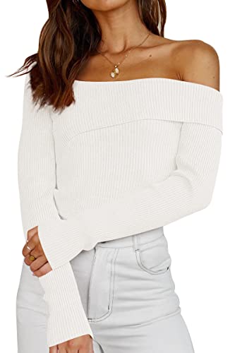 Design: Off The Shoulder, Ribbed Knit Design, Long Sleeve, Slim and Lightweight. It Allows You Show Your Clavicle and Neck Lines, Sets Off the Beautiful Face, and Highlights the Feminine Charm.